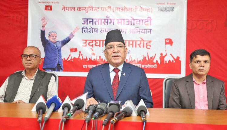काठमाडौं । प्रधानमन्त्री एवम् माओवादी केन्द्रका अध्यक्ष पुष्पकमल दाहाल ‘प्रचण्ड’ले ‘जनतासँग माओवादी विशेष रूपान्तरण’ तीन महिने अभियानको शुभारम्भ गरेका छन् । शनिबार बिहान पार्टी केन्द्रीय कार्यालय पेरिसडाँडाबाट ६ हजार ७४३ वडामा भर्चुअलमार्फत एकसाथ ब्यानर खोलेर अभियानको उद्घाटन गरेका हुन् ।