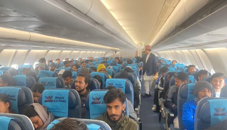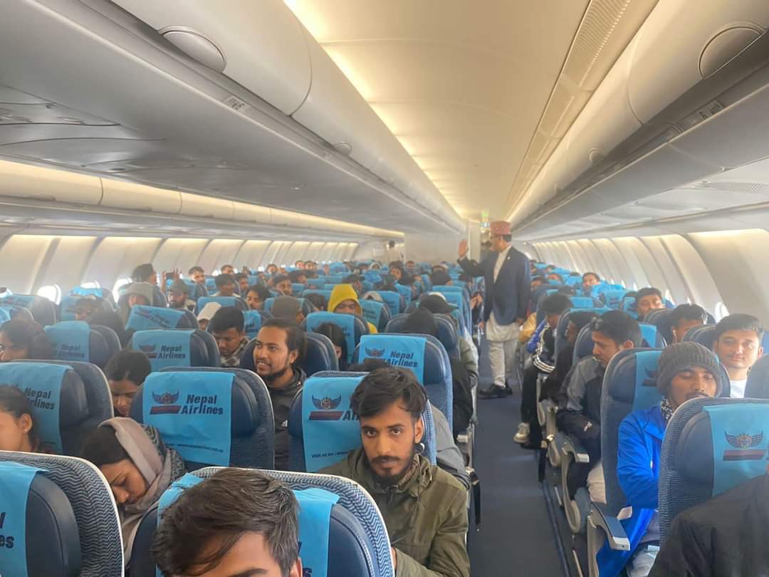 नेपाली नागरिकलाई लिन गएको नेपाल वायु सेवा निगमको विमानबाट उनीहरु स्वदेश फर्केका हुन् ।