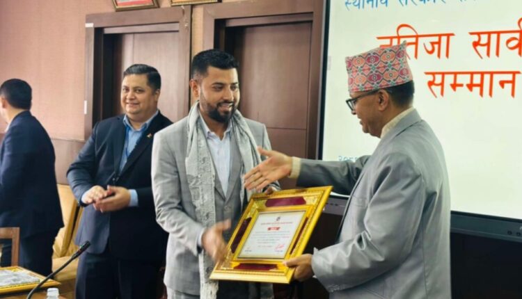 (तस्बिरमा संघिय मामिला तथा सामान्य प्रशासन मन्त्रालयमा आयोजित एक समारोहमा सम्मान ग्रहण गर्नुहुदै रुरुक्षेत्र गाउँपालिका अध्यक्ष यदु ज्ञवाली । गुल्मीको रुरुक्षेत्र गाउँपालिका देशकै उत्कृष्ट गाउँपालिका बनेको हो । )