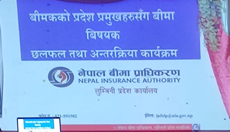 नेपाल बीमा प्राधिकरण लुम्बिनी प्रदेश कार्यालयको आयोजनामा बिमकको प्रदेश प्रमुखहरु संग बीमा बिषयक छलफल तथा अन्तरक्रिया कार्यक्रम सम्पन्न भएको छ ।