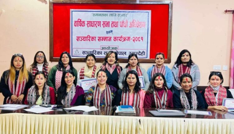 बुटवल ।सञ्चारिका समुह रुपन्देहीको वार्षिक साधारणसभा तथा ५ औं अधिवेशनले मिना ढकालको नेतृत्वमा कार्य समिती चयन गरेको छ। जसको उपाध्यक्ष अस्मिना पाण्डे ,  महासचिवमा  छाँया पन्त, सचिवमा पूजा पन्थी, कोषाध्यक्षमा अम्बिका परियार, कार्यक्रम संयोजक कल्पना डुम्रे  चयन हुनुभएको छ ।