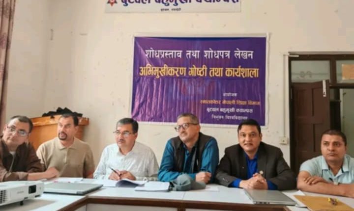 बुटवल । बुटवल बहुमुखी क्याम्पसमा स्नातकोत्तर एमएड नेपाली शिक्षा चौथो सत्रका विद्यार्थीहरूका निम्ति शोधपत्र लेखन अभिमुखीकरण कार्यक्रम आइतबार सम्पन्न भएको छ । विभागीय प्रमुख डा.नारायणप्रसाद पन्थको अध्यक्षता, क्याम्पस प्रमुख डा. अरुणकुमार क्षेत्रीको प्रमुख आतिथ्य तथा त्रिभुवन विश्वविद्यालयका प्राध्यापक डा.रामनाथ ओझाको विशेष आतिथ्यमा सम्पन्न कार्यक्रम डा. प्रेमप्रसाद तिवारीको स्वागत तथा डा. शालिकराम पौड्यालको संचालनमा भएको थियो ।
