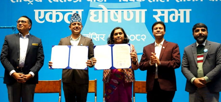 रास्वपाका तर्फबाट कार्यबाहक सभापति डोलप्रसाद अर्याल र डा. स्वर्णिम वाग्लेले हस्ताक्षर गर्नु भएको हो । विवेकशील साझाकी अध्यक्ष समीक्षा बाँस्कोटा र उपाध्यक्ष प्रकाशचन्द्र परियारबीच हस्ताक्षर भएको हो।