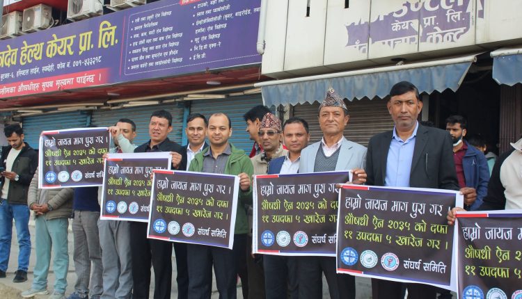 बुटवल । औषधी ऐन २०३५को दफा ११ उपदफा ५ को खारेजीको माग गर्दै औषधी ब्यवसायीहरु आन्दोलित भएका छ्न । चरणबद्ध आन्दोलनमा होमिएका ब्यवसायीहरुले आज दिउसो ११ बजे देखी १२ बजे सम्म देशै भरी आफ्ना औषधी पसल बन्द गरि बिरोध जनाएका हुन ।