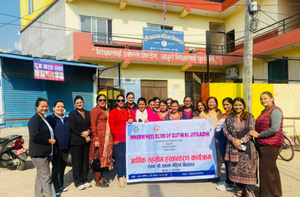 क्लवले साधना महिला बिद्यालय बुटवललाई रु १० हजार सहयोग गरेको हो ।आफ्नो बार्षिक कार्यक्रम अन्र्तगत यो कार्यक्रम गरेको क्लवका अध्यक्ष डिलकुमारी भट्टराईले बताउनुभयो ।कार्यक्रम रोटरी क्लब अफ बुटवल डाउनटाउनका सदस्य रो. तेजु लुइटेलको प्रमुख आतिथ्यता क्लवका अध्यक्षडिलकुमारी भट्टराइको अध्यक्षता सचिव रीता लामिछोको संचालनमा सम्पन्न भएको थियो ।