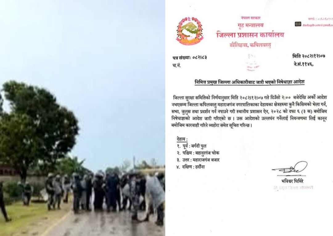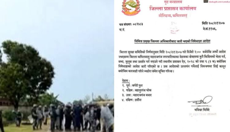 कपिलवस्तु । जिल्ला प्रशासन कार्यालय कपिलवस्तुले जिल्लाको महाराजगञ्ज बर्गदवा क्षेत्रमा अनिश्चितकालीन निषेधाज्ञा जारी गरेको छ ।